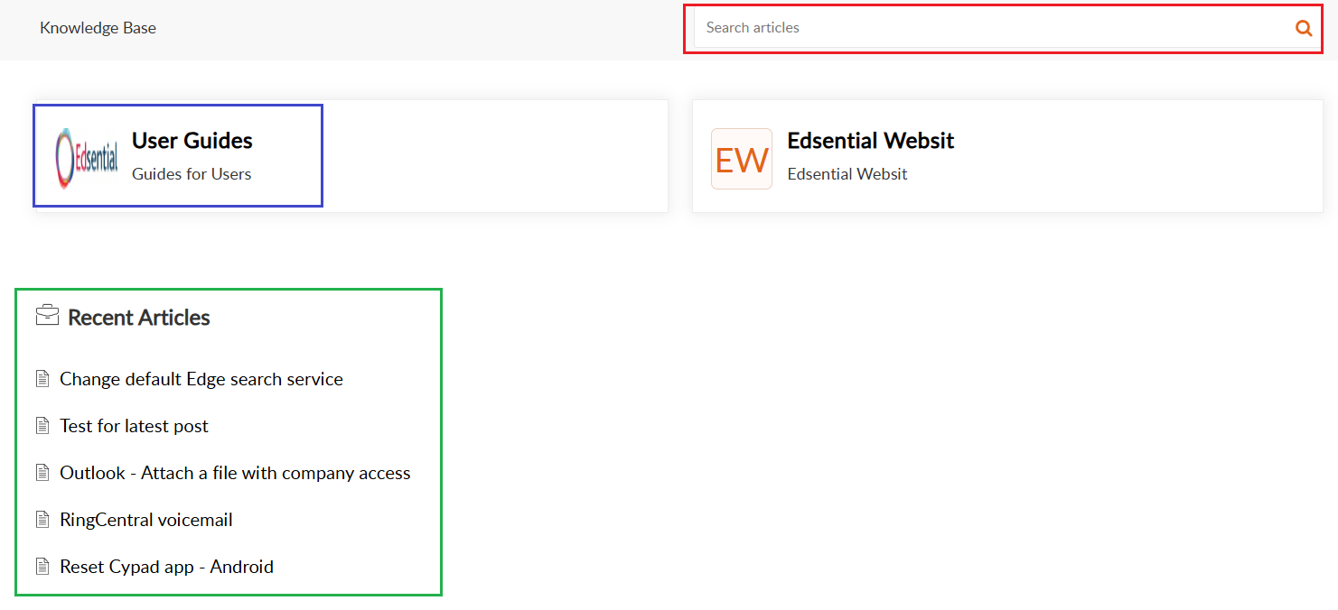- Quickly access area such as the knowledge base, recent articles/guides.
