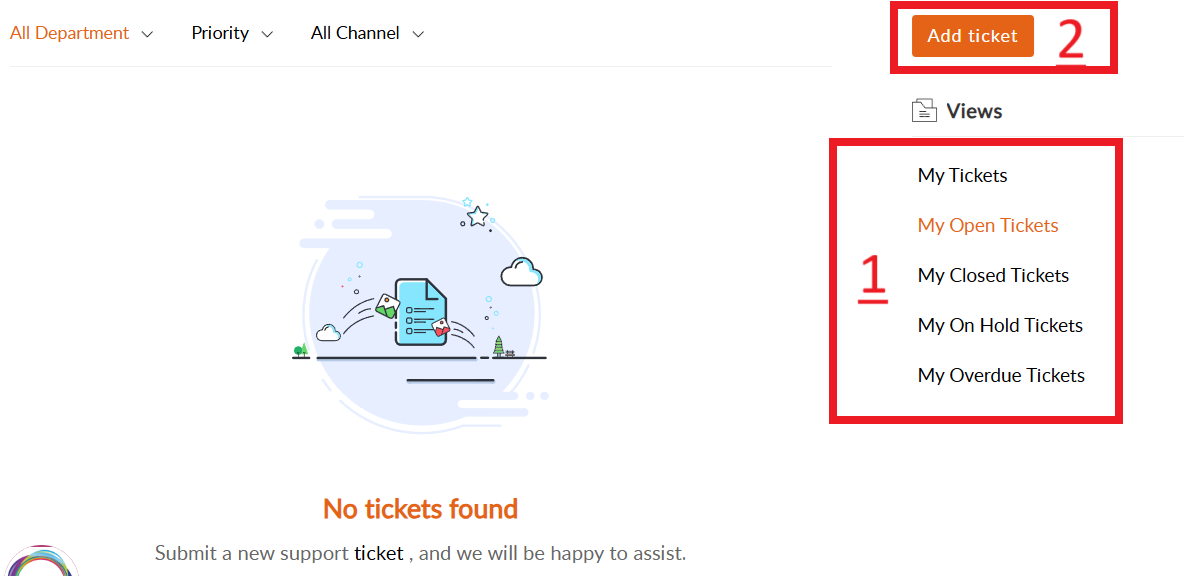 My Area - This is where your tickets live, you can see open tickets or review old ones.